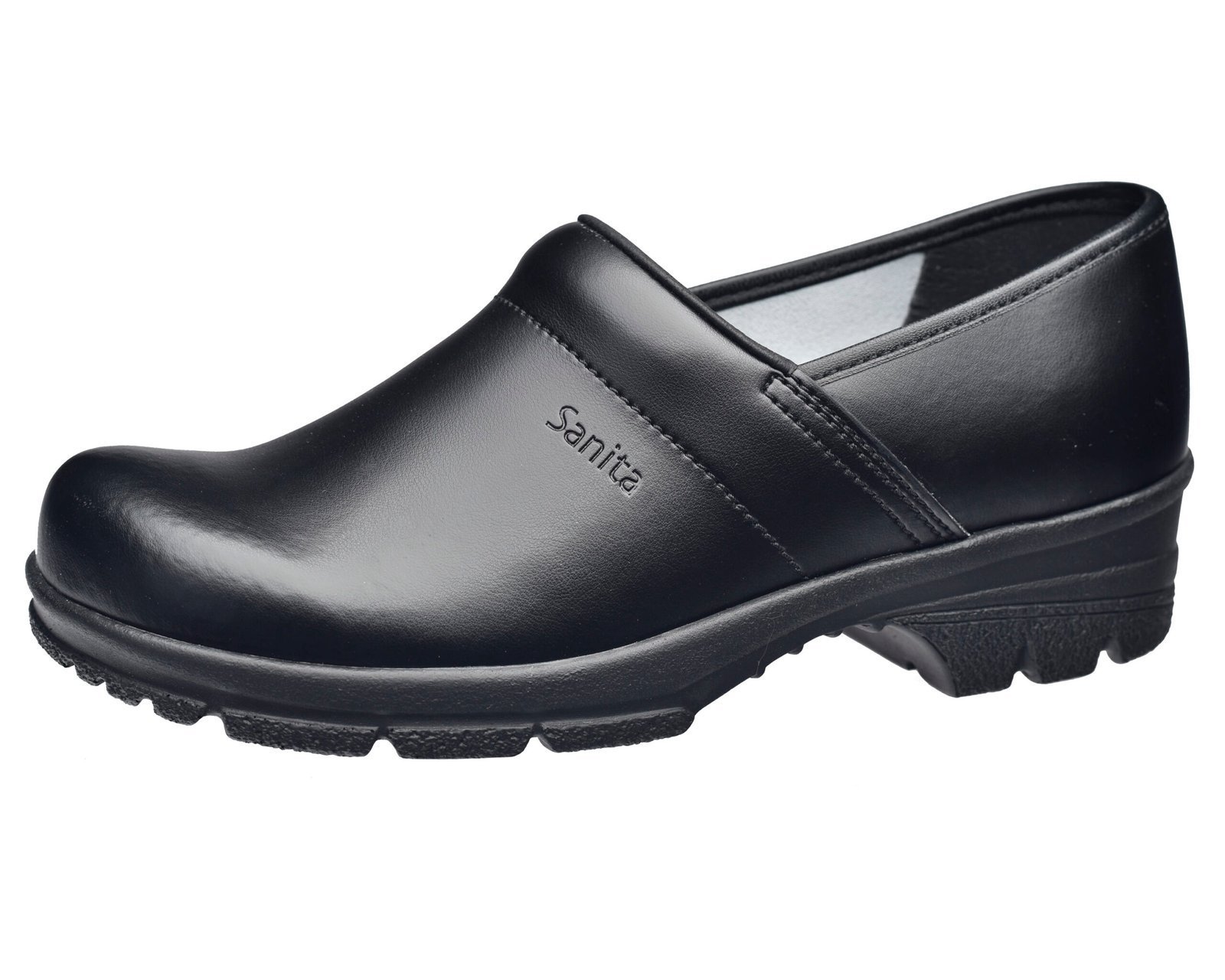 The full-length insole, made of non-allergenic leather, conveys heat and moisture away from the feet so they stay dry all day long. All of Sanita S3 clogs are produced with a non-metallic, penetration-resistant midsole.